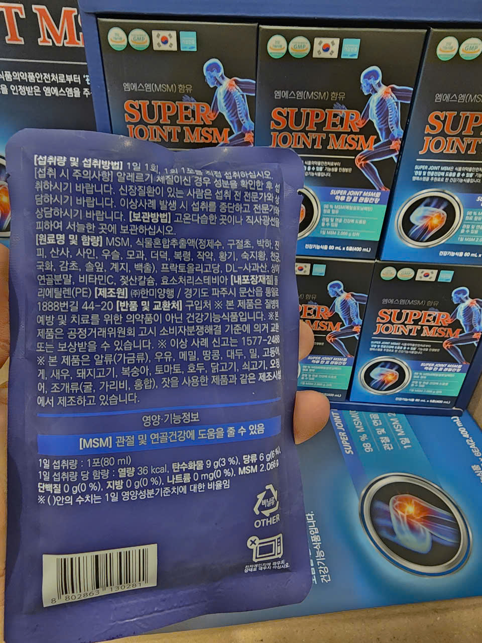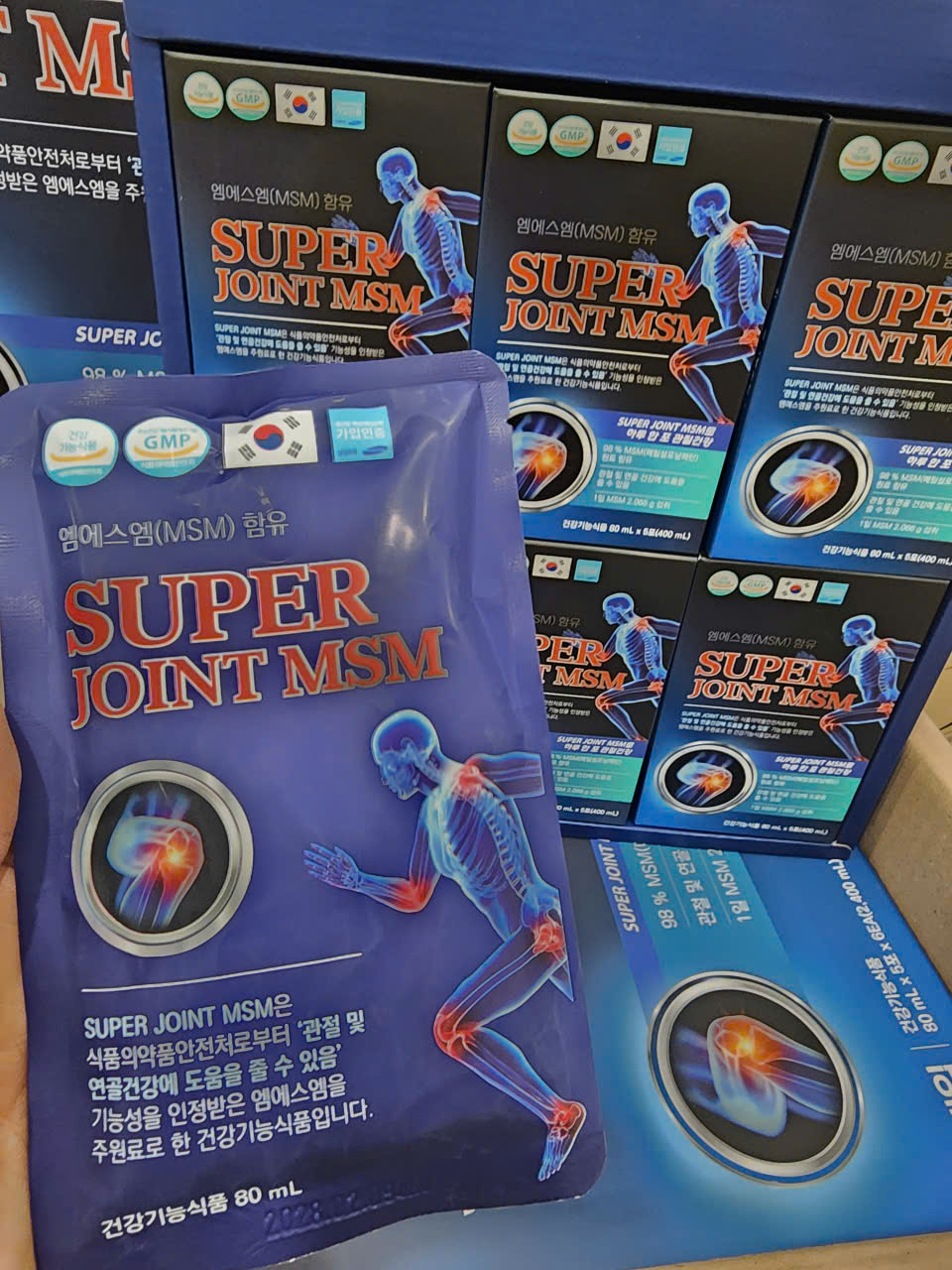 ► Bổ Khớp Nước Cao Cấp SUPER JOINT MSM HANMI Hộp 30 gói là một loại thực phẩm chức năng sức khỏe được sản xuất với thành phần chính là MSM, đã được Bộ An toàn Thực phẩm và Dược phẩm Hàn Quốc công nhận vì chức năng của nó là có thể hỗ trợ sức khỏe khớp và sụn.
