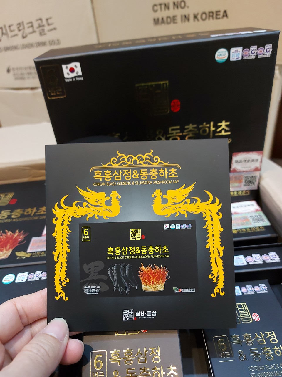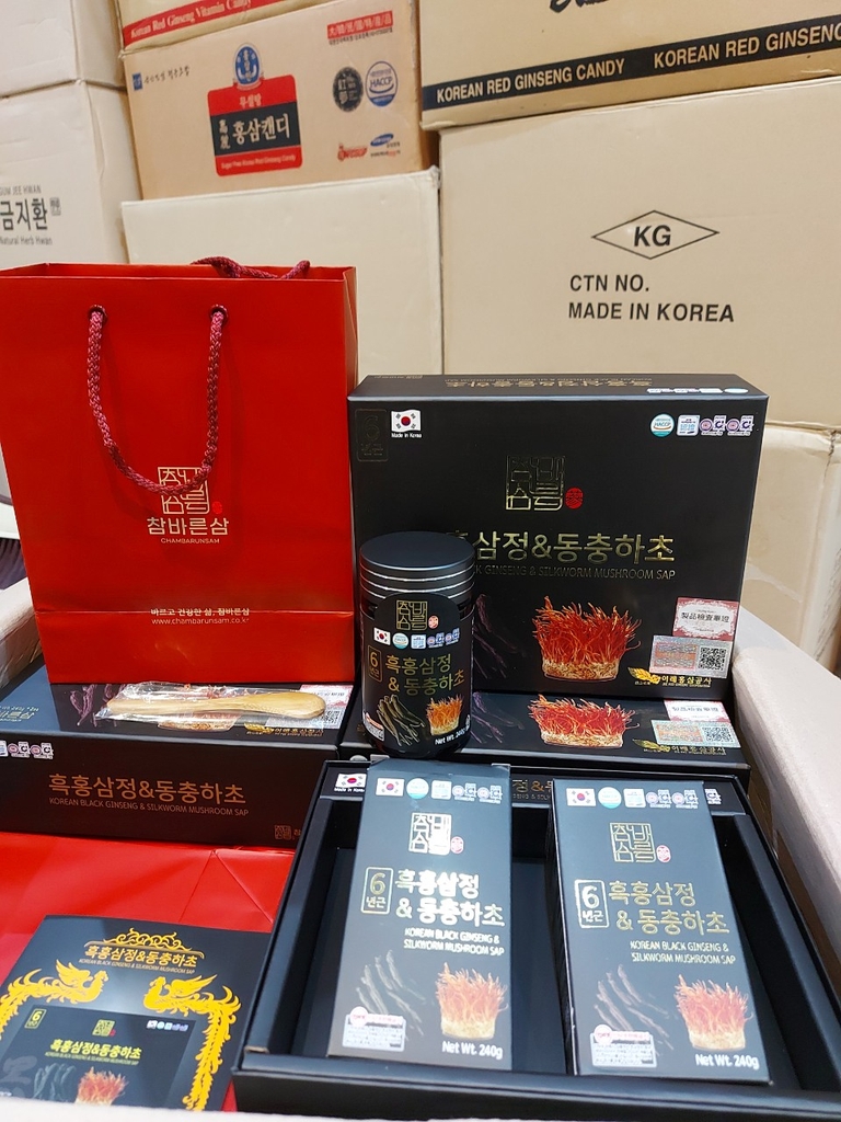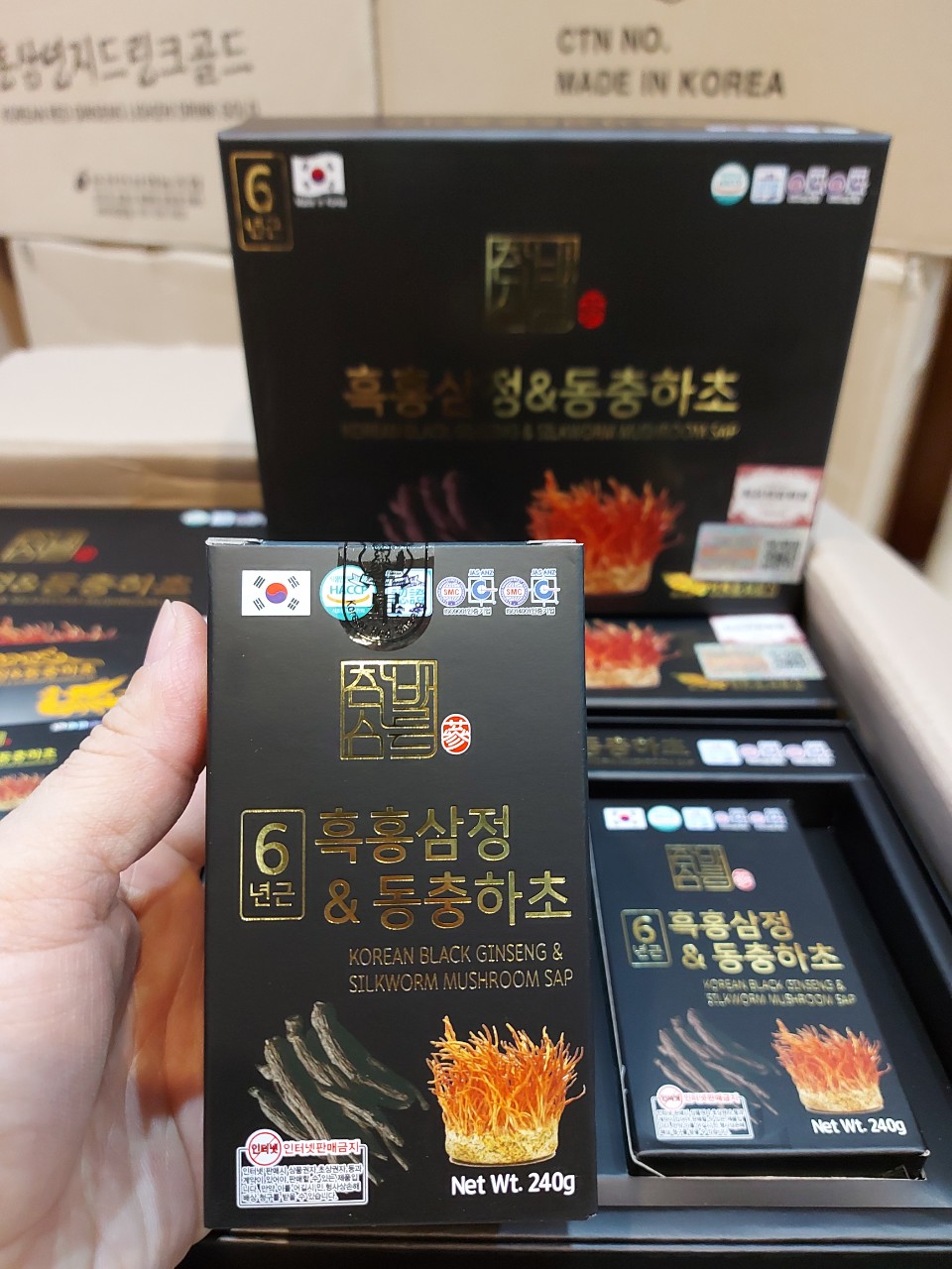 Cao hắc sâm đông trùng hạ thảo Hàn Quốc là sản phẩm được tinh chế từ những củ sâm hàn quốc 6 năm tuổi chất lượng trải qua 9 lần hấp sấy tạo thành hắc sâm, kết hợp với đông trùng hạ thảo và trải qua quá trình chọn lọc và sản xuất nghiêm ngặt tạo ra những giọt cao chất lượng:
